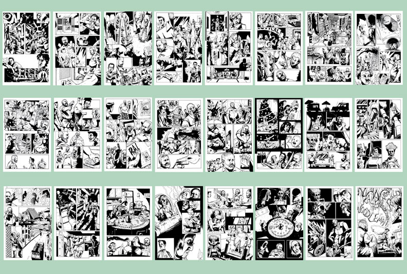 This project just kind of fell in my lap, after complementing Joe Venegas, Chad Waters and Matt Rose on the fine job they did on issue #1. I'd worked with Chad and Matt on Hellboy, and had seen the short films, so I sent them an email about the book, and what I got back was, "Would you be interested in drawing issue #2?" And here I am, getting ready to do pencils and inks on issue 2. Below is the promo card drawn by me and colored by my good pal Dave Lamb. And below that are my original B&W pages for #2, just ready to be colored. To see the final work- get yourself a copy of the book.
