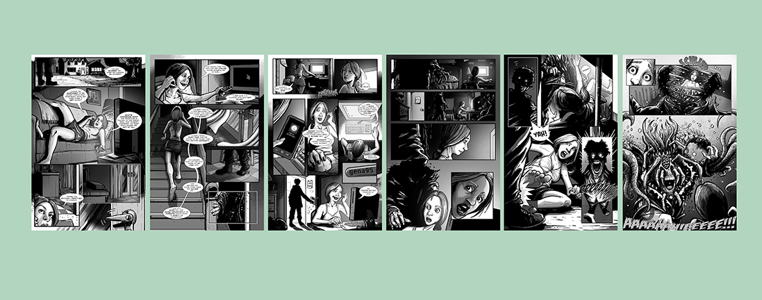 Here's a comic pitch I did with crazy-talented writer Jared Rivet. He had written this great screenplay about monsters hidden in plain view- I swear it read like a John Carpenter film. We decided that it could make for a great comic and, if nothing else, some fantastic pitch material for his script. We never got past these first six pages, but it's a project that I'd love to finish one day.