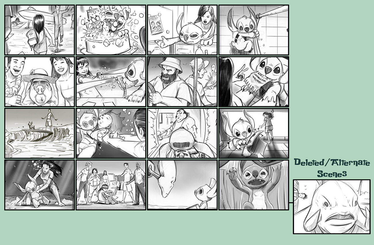 So here's a large sampling of the work I did on Lilo & Stitch. Even with the inclusion of some select deleted or alternate scenes, there are a vast amount of drawings that